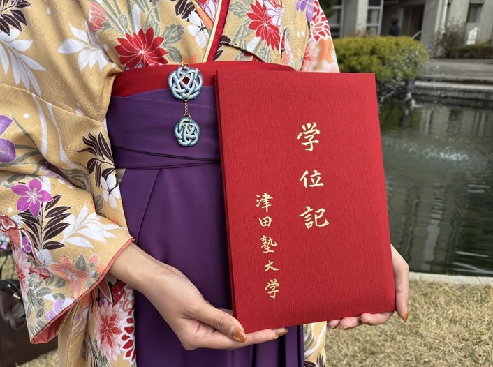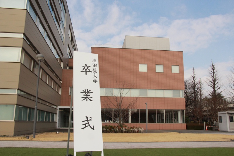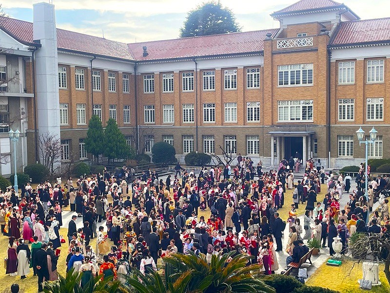 また、午後には有志による卒業記念パーティーが千駄ヶ谷キャンパスにて開催されました。卒業記念パーティーに参加する総合政策学科の卒業生が小平キャンパスから移動してきたことで、千駄ヶ谷キャンパスも華やかな袴で彩られました。式典の厳かな雰囲気とは一変し、仲間たちと思い出を語り合う学生たちの姿は晴れやかで、共に過ごした時間の濃さを物語っていました。